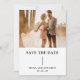 Boda contemporánea y moderna salve la tarjeta de fecha con un diseño simple y mínimo con "Save the Date" junto con tus nombres y fecha boda en tipografía en negrita debajo de tu foto favorita. La parte posterior tiene una segunda imagen, su monograma inicial y su mensaje personalizado. Esta minimalista boda tipográfica en blanco y negro, que permite guardar la tarjeta de fecha, se puede personalizar a cualquier color que elija en la herramienta de edición de diseño.