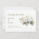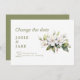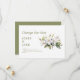 Infórmele a sus huéspedes sobre sus nuevos planes con este elegante cambio de tarjeta de fecha. Con un delicado ilustracion de flores de manzana en blanco y verde suave, este diseño utiliza una tipografía serif moderna en verde oliva sobre un fondo blanco limpio para un aspecto fresco y minimalista. La tarjeta comunica claramente tu postergación con un toque personal y amable, perfecto para bodas de primavera o jardín. El reverso presenta un verde oliva sólido para un acabado sofisticado.