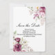 Elegantes y románticas, las tarjetas de "Save the Date" de Flor de Peonía Floral Romantic Bloom presentan un fondo claro adornado con flores de acuarela en ciruela intenso, rosa sonrosado y marfil. Esta plantilla personalizable es perfecta para bodas, compromisos, despedidas de soltera y ocasiones especiales. Personalice el texto para que coincida con su evento único, ya sea un evento moderno de corbata negra o una celebración de inspiración vintage. El arreglo floral refinado crea una estética atemporal, ideal para parejas que buscan una mezcla de sofisticación y romance. ¡Perfecto para uniones de manos!