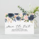 Hermoso boho floral Save the date card presenta gráficos florales de acuarela pintados a mano / rosas en ricos tonos de azul marino y rosa/melocotón rubio y tipografía encantadora estilo letras a mano. Comuníquese conmigo para obtener ayuda sobre la personalización o si necesita cualquier otro producto con este diseño.