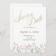 Elegante flor silvestre de moda salva la fecha. Guarde bellamente la fecha que se puede personalizar con su nombre. Seleccione el botón "personalizar" para cambiar el estilo de fuente, color y tamaño.
