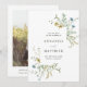 Esta elegante tarjeta de aviso de boda salva la fecha cuenta con flores silvestres de acuarela pintadas a mano en amarillo mantequilla, verde salvia, verde polvoriento y azul claro con una foto y más información en la parte posterior. ¡Para una personalización más avanzada de este diseño, haga clic en el BOTÓN DE HERRAMIENTA DE DISEÑO AZUL de arriba! Los artículos coincidentes también están disponibles.