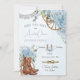 Esta moda Quinceañera salva la fecha con acuarela azul floral, botas de vaquero adornadas con flores, herradura y elementos de temática occidental. Personalízalo con sus detalles de forma fácil y rápida, simplemente pulse el botón Editar usando herramientas de diseño para reorganizar y formatear el estilo y la ubicación del texto. c) El estudio Happy Cat Studio