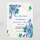 Floral azul geométrica de marco dorado guarda la tarjeta de fecha Invitación. Personalización de la invitación Tarjeta floral azul Geométrica Gold Frame