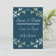 Se trata de un hermoso patrón floral, de vid/hoja, combinado con un lujoso fondo azul y un poco de elegancia y sofisticación en el tipo de letra curvado. Creo que esta invitación cubre todas las bases. Tienes un hermoso patrón floral/hoja con un elegante tipo de letra, así como un llamativo color azul para trabajar. ¿Qué más querría un chica? Puedo imaginarme este hermoso color azul con flores de marfil y cintas de cintura fluyendo por la parte de atrás de cada asistente que gobiernan. ¡Magnífico! Imaginen coronas de flores de invierno con sólo un pequeño aliento de bebé (Gasp) para los asistentes con una combinación de cintas azules y marfil saliendo de la espalda. La criada de honor tendrá una corona de corona de flores de aliento de bebé y cintas de marfil que fluyen de las suyas. Será el boda del año. ¡Envíame una invitación!