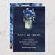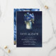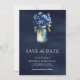 Reserva La Fecha Floral azul oscuro Mason Jar Photo Boda