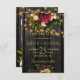 Elegante y rústica foto de elegante boda salva la tarjeta de plantilla de fecha en el fondo de un granero marrón oscuro con cuerdas de luces de manga y flores color burdeos y crema de marfil con hojas verdes y follaje. ++++++++++ Fácil de personalizar con tus detalles! +++++++++ Puede elegir personalizar para cambiar aún más las fuentes y los colores de las letras. ++++++++++++++++++ La invitación es apta para otoño o invierno rústico país | casa de campo o Navidades con bodas florales temáticos.