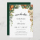 Elegante, moderno y bohemio Bodas Salven las tarjetas planas de fecha para su ocasión especial! Borde foliage de color de agua en hojas oscuras y verde claro, con fruta naranja de la naturaleza y flores en miniatura marcos en la parte superior de tu boda Guardar los detalles de la fecha. Sus nombres aparecen en la parte superior con un estilo moderno y en la tarjeta inversa se muestra un fondo verde sabio. Personalizar los detalles de su boda, fecha, lugar y más en la parte delantera.