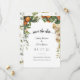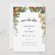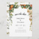 Bonito, elegante, moderno y bohemio ahorra las tarjetas planas de dátiles para tu ocasión especial! Borde foliage de color agua en hojas oscuras y verdes, con fruta naranja natural y flores en miniatura marcos en la parte superior de tu boda, salvo los detalles de la fecha. Sus nombres aparecen en letra moderna en la parte superior, y tarjeta inversa para revelar un patrón de follaje verde en la parte posterior. Personalizar los detalles de su boda, fecha, lugar y más en la parte delantera.