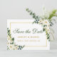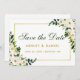Floral Floral Verde Oro Blanco Guardar la tarjeta de compromiso de fecha