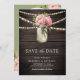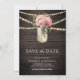 Reserva La Fecha Floral rosa Mason Jar Foto Boda de madera