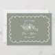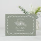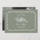 Borde de vieiras dibujado a mano con ilustracion botánico floral de texto y línea sobre fondo Sage Green. Personalice la foto de atrás.