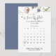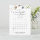 Esta floral silvestre salva el calendario de fechas es perfecto para un boda rústico. Este diseño presenta una acuarela pintada a mano con flores silvestres blancas y azules con follaje verde.