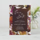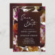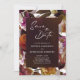 Floral Splendor QR Código Moody Boda moderna Guardar la fecha... Nuestra floral única tarjeta Save the Date incluye una disposición de flores rosadas, naranjas y crema pintadas con aceite, y colocadas en un marco de madera de siena oscura que contiene tu texto de invitación en escritura moderna de caligrafía blanca y elegante tipografía serif y sans serif. El aspecto es "moderno" con la siena oscura de la tarjeta mostrando el código QR de su sitio web boda así como la URL del sitio web, lo que permite a los invitados ver fácilmente todos los detalles que normalmente se envían en un paquete boda. La plantilla gráfica de código QR y todo el texto de ejemplo (aparte de los elementos caligráficos gráficos) se pueden revisar fácilmente con su propia información sobre la plantilla de personalización.