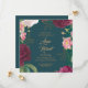 ¿Estás planeando una boda romántica, rústica, campestre o de granero? El fondo verde esmeralda resalta tus detalles en dorado y flores en rojo y rosa. La vegetación floral de acuarela con flores blancas da a tus invitaciones de boda un brillo especial