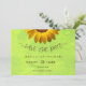 Reserva La Fecha Flores amarillas sobre el Boda Verde abstracto