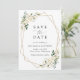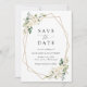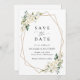 Invite a amigos y familiares con estilo y establezca el tono de su día especial con este encantador y ahorre la tarjeta de fecha. El diseño está decorado con flores de acuarela blanca, vegetación y marco dorado sobre fondo blanco.