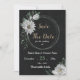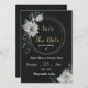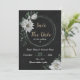 Invitación nupcial única con flores blancas románticas y fondo negro de hojas verdes. PARA OBTENER MÁS PRODUCTOS COINCIDENTES, haga clic en la colección superior o póngase en contacto conmigo.