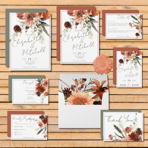 Rustic Terracotta Rust Flowers Wedding SuiteDiseñado por Kathe Santillo