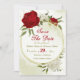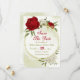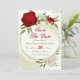 Hermoso salve la tarjeta de fecha con flores rojas y blancas y hojas verdes sobre un marco geométrico de oro elegante Los detalles del purpurina de oro son simulados. PARA OBTENER MÁS PRODUCTOS COINCIDENTES, haga clic en la colección de arriba o póngase en contacto conmigo