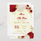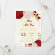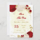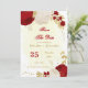 Romántico de flores rojas y blancas oscuras con hojas de oro botánico ahorrando la invitación a la fecha Los detalles del purpurina son simulados.