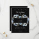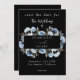 Flores azules enmarcan elegante boda negra salva la fecha.