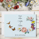 Un fondo azul claro con flores silvestres, setas, margaritas blancas y mariposas monarcas. Perfecto para las parejas que aman el exterior y el encanto rústico.
