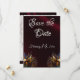 Este diseño tiene una elegancia rústica, manteniendo un tema simple. Ramos de flores silvestres en hermosos colores cálidos de verano sobre un fondo borgoña con marcadores de posición para la fecha. La parte posterior cuenta con espacio para una foto de la pareja bordeada con cinta borgoña sobre un fondo de madera de granero. Diseñado para coordinar con la Colección Rustic Wildflowers & Ribbon. Para cambiar los detalles, haga clic en «Personalizar». Para mover el texto o cambiar el tamaño, la fuente o el color del texto, haga clic en «Haga clic para personalizar aún más».