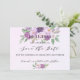 Un moderno y elegante Salven la Fecha para un boda. Violeta color agua, fondo de lavanda, texto negro. Decorada con flores violeta y violeta. Personalice y agregue una fecha y nombres. El texto: Save the Date se escribe con un gran guión de estilo escrito a mano.