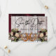 This design has a rustic elegance, keeping it simple theme. barnwood background with burgundy ribbon, lace, knotted horseshoes and wildflower bouquets with placeholders for the date on the front. Placeholder for a photo of the couple is on the back of the card with names, and "Gettin' Hitched" script on matching ribbon background. Designed to coordinate with "Gettin' Hitched - Horseshoes, Ribbon & Lace" Collection. To change details, click «Personalize». To move the text or change the text size, font, or color click «Click to customize further»