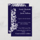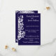 Una invitación a la boda con un fondo azul marino con un diseño inspirado en Swirl Modern Elegant con texto en blanco.