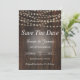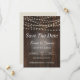 Las invitaciones Save The Date tienen un fondo de madera, luces elegantes y texto blanco. Son hermosos Twin Spirit Diseña invitaciones para enviar a sus invitados, y todo el texto es personalizable. Aproveche esta oportunidad para crear un evento único y memorable con nuestras invitaciones de personalizable.