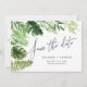 Hermoso diseño moderno de acuarela tropical para guardar la fecha. Texto con letra script preciosa. Parte de una colección de celebración de boda de verano.