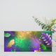 Fondo de mardi gris azul textural con manchas de color violeta, amarillo y verde, adornadas con plumas esponjosas y cuentas brillantes. Fiesta de Mardi gras.