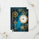 fondo turquesa, texturado, de vapor punk con bronce y oro, llave de plata y reloj. Estilo Steampunk.