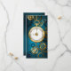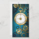 fondo turquesa, texturado, de vapor punk con bronce y oro, llave de plata y reloj. Estilo Steampunk.