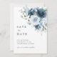Reserva La Fecha Foto Azul Polvo Naval Floral Boda