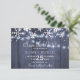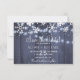 Moda boda de invierno moderna ahorre la plantilla de la tarjeta de fecha con su foto personalizado (sangrado total horizontal / orientado al paisaje) en la parte posterior. Los copos de nieve blancos y las luces de trineo colgantes sobre el fondo de un granero gris azul oscuro crean un bonito diseño invernal en la parte delantera. Ideal para un invierno rústico y elegante | boda de temporada con temática de tierras maravillosas.