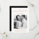 Esta moderna Wedding Save the Date presenta hermosa caligrafía en color oro y una foto en el frente con una espalda negra de personalizable.