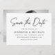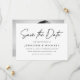 Simplemente guarde la tarjeta de fecha con "Save the Date" en un guión manuscrito negro con fondo blanco. Personalice el moderno guardar la tarjeta de fecha agregando sus nombres, fecha de boda, ubicación de boda, sitio web de boda, etc. El minimalista guarda la tarjeta de fecha se revierte para mostrar tu foto de compromiso horizontal favorita.