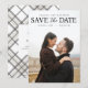 Foto Completa Moderna Salvar la Fecha con diseño de cuadros en la parte trasera con monograma e información en el reverso.