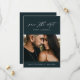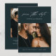 Una romántica y simple tarjeta de anuncio de boda con hermosa caligrafía, foto horizontal y texto mínimo en la parte frontal. La parte trasera tiene una foto vertical con el sitio web de la boda. Haga clic en el botón de edición para personalizar este diseño.