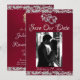 Este diseño romántico presenta un elegante fondo burgundy con bordes brillantes, espacio para la foto de la pareja, y dos corazones de plata entrelazados con la fecha del evento en elegante letra cursiva en la parte frontal. La parte trasera tiene un espacio para un monograma, más información y lugar para su sitio web. También disponible con diferentes colores de fondo para los colores de su tema de boda. (El brillo es simulado en la obra de arte). Diseñado para coordinar con la Colección de Bodas "Two Shall Become One - Hearts, Doves & Glitter". Para cambiar los detalles, haga clic en «Personalizar». Reemplace la foto con la suya. Para mover el texto o cambiar el tamaño de la fuente, la fuente o el color, haga clic en «Haga clic para personalizar aún más».