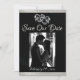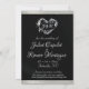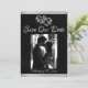 Este diseño romántico presenta un elegante fondo negro con bordes de cinta, espacio para la foto de la pareja, y dos corazones enlazados con la fecha del evento en elegante letra cursiva en la parte frontal. La parte trasera tiene un espacio para monograma, más información y lugar para su sitio web. Disponible en varios colores para el tema de su boda. (La cinta es simulada en el arte). Diseñado para coordinar con la colección de bodas "Two Shall Become One - Silver & Gold". Para cambiar detalles, haga clic en «Personalizar». Para mover el texto o cambiar el tamaño del texto, la fuente o el color, haga clic en «Haga clic para personalizar más».