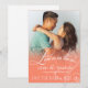 Esta divertida tarjeta de guardar fecha presenta un gradiente de color melocotón con una tipografía de letra "El amor está en el aire" muy bonita. Fácil y sencillo de personalizar ~ solo use el botón PERSONALIZAR para agregar su texto y su foto favorita. Viene en 13 colores. Para preguntas o solicitudes personalizadas, envíe un correo electrónico a: cheryl@cheryldanielsart.com. Diseño original "Love Mist" por Cheryl Daniels © 2014.