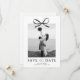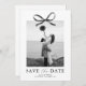 Estas bodas ahorran las tarjetas de fecha con un fondo blanco moderno, con una pieza central de fotos, y un arco acuarela negro clásico. En la parte de atrás hay otra foto y más detalles sobre su futuro boda.
