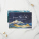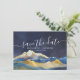 Plantilla de tarjetas de foto para guardar la fecha de boda elegante vintage moderno - Montañas de acuarela con paisajes de escenarios de foil de oro falso azul verde.