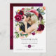 Tarjeta de foto de boda boho floral para guardar la fecha con flores de peonía y anémona, vegetación y plumas en acentos de ciruela burdeos y rosa desvanecido personalizable según tus especificaciones.
