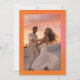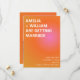 Esta tarjeta de guardar la fecha con tu foto en la parte posterior anuncia tu boda con un audaz gradiente de puesta de sol de verano en naranja y rosa. La mezcla de colores cálidos y brillantes captura el sentimiento de celebraciones en la hora dorada y reuniones alegres por la noche. Diseñada para parejas modernas que planean una ceremonia de verano vibrante, establece el tono para un día de boda elegante y seguro. Es una forma brillante y memorable de compartir tu fecha y generar emoción con los invitados.