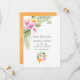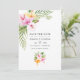 Invitación de boda floral tropical aguada con hibiscos naranjas y rosados diseñada para personalizarse rápida y fácilmente según los detalles de su evento.